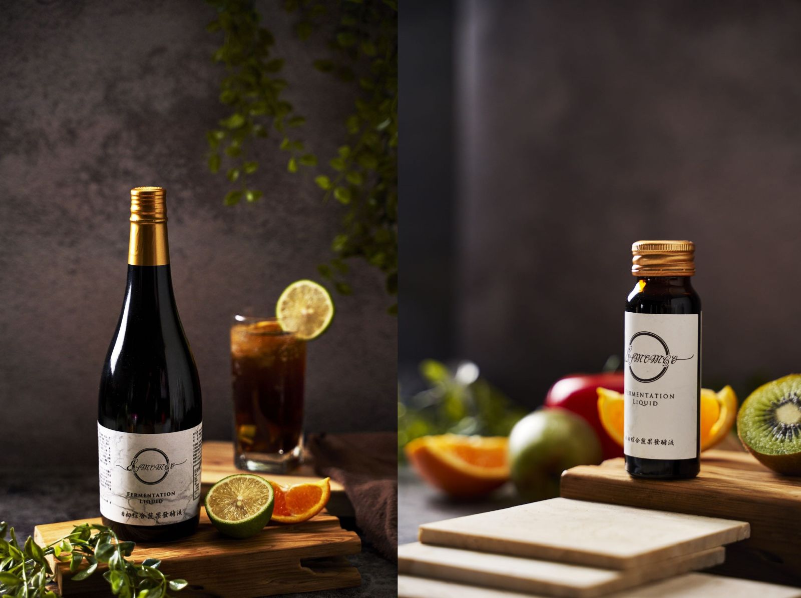 ▲本次達成碳中和產品,分別為(左)750ml與(右)50ml四入盒裝綜合蔬果發酵液